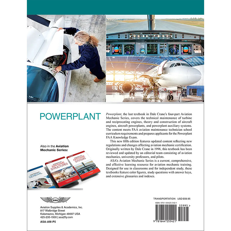The Aviation Maintenance Technician: Powerplant is the third book of Dale Crane's AMT Series, textbooks that were created to set the pace for maintenance technician training and serve as an essential resource to pass the FAA Knowledge Exam. Powerplant is now in its fourth edition and has been updated to today’s practices and procedures, featuring full-color illustrations throughout. The Technical Editor for this Fourth Edition is David Scroggins. Powerplant covers the final section of the FAA’s required curriculum, detailing the technical maintenance of turbine and reciprocating engines, theory and construction of aircraft engines, aircraft powerplants, and powerplant auxiliary systems. Dale Crane's textbooks consist of the most complete and up-to-date material for A&P training. The curriculum meets 14 CFR Part 147 requirements and Learning Statement Codes from the FAA mechanics knowledge tests. The books are designed for at-home, classroom, or university-level training. These comprehensive textbooks include explanatory charts, tables and illustrations along with an extensive glossary, index, and additional career information. Margin definitions and notes highlight important facts on each page of text. A study guide is included within each textbook in the form of study question sections placed throughout, with answer keys printed at the end of each chapter. These can be used for evaluation by an instructor or for self-testing. ASA's mechanic textbooks are all-inclusive—no separate, inconvenient workbook is needed by the student or instructor. |