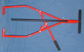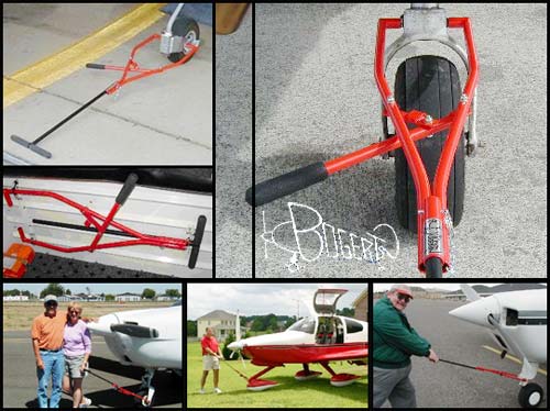 I should point out that the tow bar shown in the picture is not the one needed for the PA-28R-200.  The actual tow bar I received has a metal dowel rod attached to one of the tow bars arms that slides thru a hollow axle on the front wheel.  A very clever design!