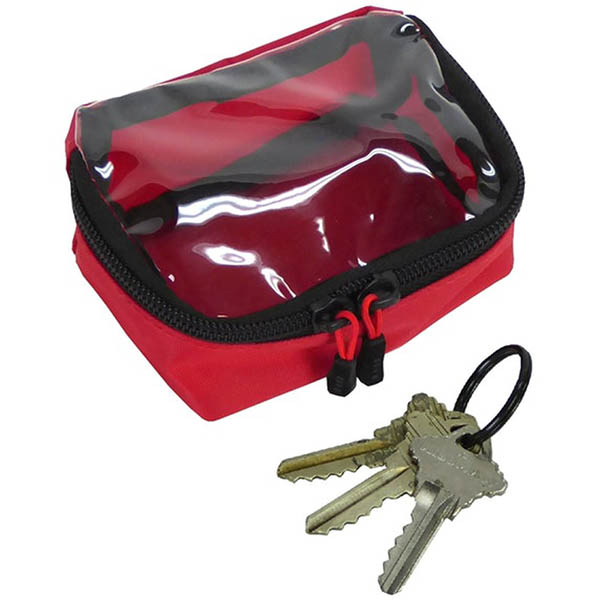 | This is a slightly taller version of the smallest of the ARRAY pouches. 4 inches long, 3 inches wide, and about 1.75 inches deep. It has a transparent lid to make it easy to see what's inside. The RED color helps you quickly differentiate between your different sized pouches. A zipper with a red cord pull goes around three sides for access. The outside bottom is covered with Hook Velcro which allows you to attach it to the FLEX ARRAY BASE PLATE. |