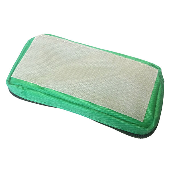 | This is the slightly taller version of the medium-size of the ARRAY pouches. 6 inches long, 3 inches wide, and about 1.75 inch tall. It has a transparent lid to make it easy to see what's inside. The GREEN color helps you quickly differentiate between your different sized pouches. A zipper with a red cord pull goes around three sides for access. The outside bottom is covered with Hook Velcro which allows you to attach it to the FLEX ARRAY BASE PLATE. |