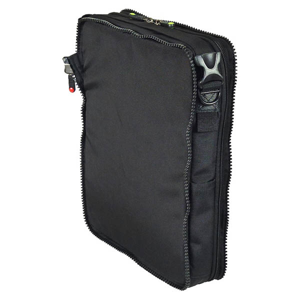 | The CS2 is designed for carrying 13" laptops, iPads and assorted documents. This center section is 13.5” x 10.5” x 2". The CS2 can be used in any configuration and is not designed to be used by itself due to the possibility of damaging the exposed zippers. The most popular configuration is the B2, consisting of a Front End Cap, a CS2, and a Rear End Cap. This configuration is perfect for buisnessmen who want to carry a 13" laptop, essential documents, cords, drives and personal items. However, the CS2 can be added to any configuration to add storage for your 13" laptop. Simply zip the CS2 into a B10, B16, or B25 to get added storage for your 13" laptop, iPad, or folders and documents. NOTE: The FLEX modules WILL NOT WORK with (will not zip onto) any older BrightLine Bag. The zippers had to be of a different type to allow this modularity concept to work. The CS2 can attach to all of the FLEX System modules. |