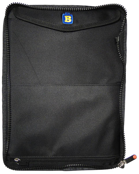 The Rear End Cap is designed to mimic the outside of the Rear Bag. It is used to finish the exposed rear area of a bag, center section, or end cap by zipping on to the exposed area. By adding a Rear End Cap, not only do you add functionality, you protect the exposed zipper, preventing possible damage. The Rear End Cap is 13.5" x 10.5". The Rear End Cap does not come with a Main Handle or a Shoulder Strap. There are three pockets on the outer surface of the Rear End Cap. One main flat pocket that covers the full width and height of the rear panel that is great for storing your iPad or other tablet computer, a thin stack of documents or a magazine or two. The primary pocket is accessed from the top and has a cover flap that is secured with Velcro. There is a second flat pocket on the outside of the first one that is somewhat smaller that is accessed through a vertical zipper on the rear panel. This is a great place to store a few smaller documents such as some travel documents or receipts etc. And finally there is a third flat half pipe slip pocket that acts as a great place to store a couple of basic documents that you want to have easy access to such as today's checklists or your boarding pass etc. The Rear End Cap is not intended to be carried by itself without anything zipped onto its front surface. The front exterior surface of the Rear End is just a "naked" panel with no pockets. With nothing attached to this surface, the separation zipper (the main zipper that allows other FLEX modules to be zipped on) ends up being rather exposed because it is just "hanging off" the front side of the bag. (Plus it just plain looks bad.) If you plan to carry the Rear End Cap by itself you should make sure you have a Front End Cap available as part of your FLEX system. This will do several things all at once: [1] It will "complete" the front surface of the Rear End Cap making it look finished and professional. [2] It will protect the separation zipper by closing it off. [3] You will get our smallest configuration. We call this the Portfolio Bag. Perfect for your iPad or tablet computer and its cords, drives, and documents you need to carry. This configuration comes with a Portfolio Handle, which attaches to the Front End Cap. NOTE: The FLEX modules WILL NOT WORK with (will not zip onto) any older BrightLine Bag. The zippers had to be of a different type to allow this modularity concept to work. The Rear End Cap can attach to the rear end of all FLEX System modules except the Rear Bag. |