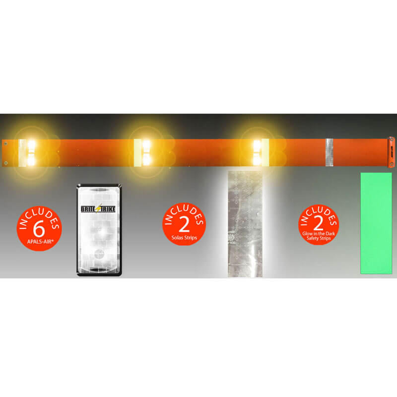 | Brite-Rescue™ is an emergency lighted signaling system. Its ultra-compact size of 1.5” x 5” easily fits into the neoprene pouch and unrolls to 10’ long. It has 6 international amber APALS-AIR® light strips, 2 photo-luminescent tape strips, 2 Solas radar reflective tape strips, and offers over 200 hours of signalling capabilities, or a total of 1200 hours if used individually. The APALS-AIR® has two strobe modes, a steady on and can be turned off and reused. The LED’s can be seen for 2 horizontal miles and 3 miles by air. It can be used on land and floats on water, so don’t take off on your outdoor adventure without one. |