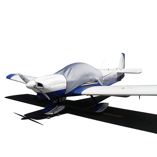 This cover is made from spandex, with the interior being slightly softer than the exterior. It's specifically designed for use inside hangars to protect your aircraft from dust. If you are looking for a cover that offers water repellency for occasional or full-time outdoor use, we recommend considering our Sunbrella cover or the travel light weight cover. Its designed to withstand outdoor conditions and provide the best protection for aircraft stored outside.