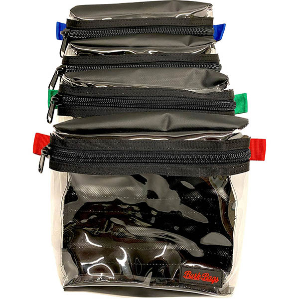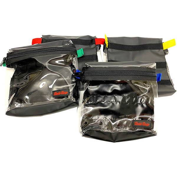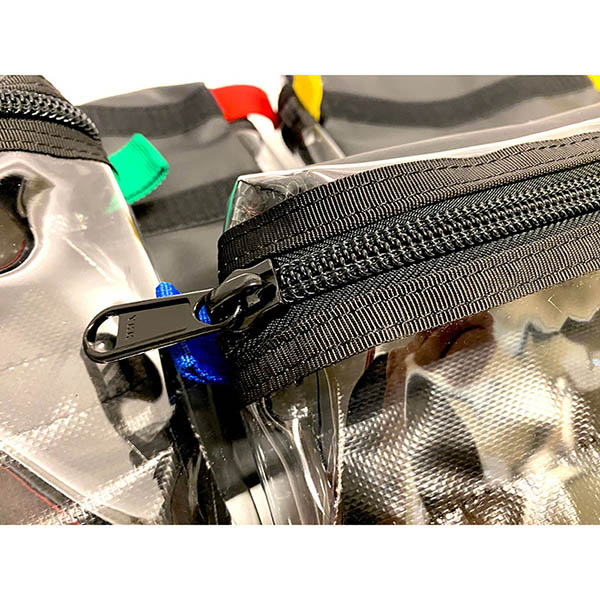 | A general purpose pouch with clear front, luggage grade zipper, and Velcro on the back. Perfect for organizing cables and camera accessories. |