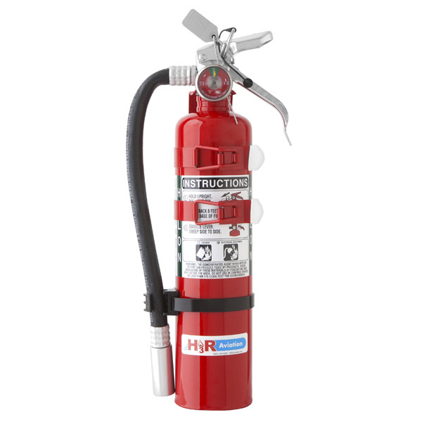 | MODEL C354TS - Halon 1211 Typical use: Cockpit/Cabin Smallest model with a discharge hose (to facilitate proper upright use). Twenty percent more Halon 1211 than model C352TS, is the same size and uses the same mounting bracket. Click here for complete listing of H3R Aviation Fire Extinguishers |