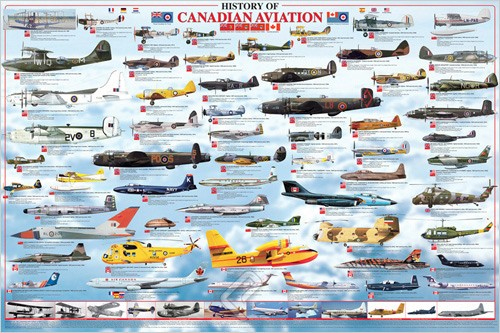 | History of Canadian Aviation poster in full color. Size is 36" x 24". |