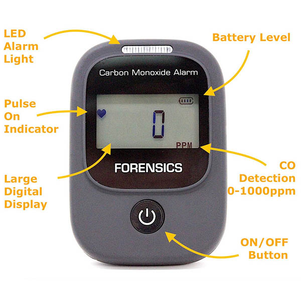 Our CO Aircraft and Vehicle CO Detector has undergone significant improvements in version 2.0 (FD-CAR002) compared to our previous version, FD-CAR001. The new version boasts brighter LED alarms, a soft rubber touch feel, a larger LCD display, and a key ring for battery replacement. With the FD-CAR002, low levels of CO detection are possible, preventing CO exposure from exhaust leaks or polluted air entering the vehicle. This feature ensures that you can have peace of mind and take preventative care to avoid headaches, nausea, and fatigue. The FORENSICS carbon monoxide detector was designed with "reliability and ease of use" in mind, making it ideal for pilots or aircraft and helicopters, police, truck drivers, vehicle owners, emergency vehicles, train drivers, UBER, fleet vehicles, personal vehicle operation, and personal protection for travel.