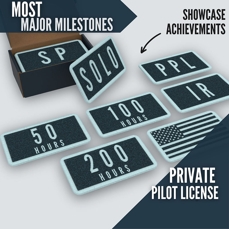 Private Pilot Milestone Patch Set Celebrate each stage of your flight training with the Private Pilot Milestone Patch Set. This set includes bold, embroidered tactical-style patches with hook and loop backing, perfect for flight bags, backpacks, or gear panels. From your first solo to checkride day, each patch marks a key milestone on your journey to earning your private pilot’s license. An American flag patch is included to honor your commitment and passion for aviation. COMPLETE SET: Includes Solo, IR, SP, 50 Hours, 100 Hours, 200 Hours, PPL, & an American Flag patch in a tactical patch style. All patches fit perfectly on your FLIGHT BAG'S hook and loop front pocket. ENHANCED DETAILING: Embroidered with grey thread on a navy background, these patches are durable and easy to attach or remove from any hook and loop surface. MILESTONES MASTERED: Showcase your milestones as you progress toward becoming a private pilot. These embroidery patches provide a visual representation of your hard-earned achievements. PREMIUM QUALITY: Crafted from high-quality materials, these patches are designed to withstand the rigors of flight training & frequent use, ensuring longevity and durability for tactical accessories. FOR PILOTS BY PILOTS: EntireFlight, founded by pilots, ensures each product meets the high standards of aviation enthusiasts. Celebrate your journey with our exclusive patches for bags. Elevate your journey to becoming a private pilot with EntireFlight's premium set of hook and loop tactical patches. Featuring milestones like Solo, IR, SP, 50 Hours, 100 Hours, 200 Hours, PPL, and an American patch, each is embroidered with grey thread on a navy background for a striking look. Designed for durability, these tactical patches easily attach to your flight bag's hook and loop front pocket. Packaged in a giftable box, they also serve as perfect gift for aviation enthusiasts. EntireFlight, founded by pilots, celebrates your success with authentic, high-quality patches for your flight bag, tactical backpack, and more. |