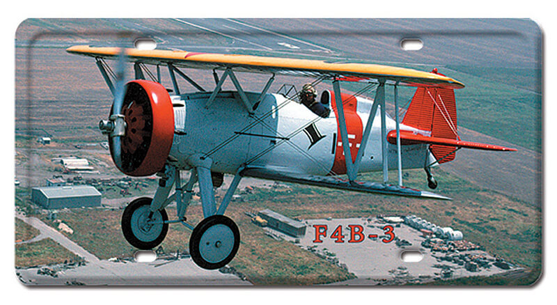 This F4B-3 metal license plate measures approximately 6-inches by 12-inches. Unlike most tin signs, we design and make our signs in the United States using 24 gauge American steel and a process known as sublimation, where the image is baked into a powder coating for a durable and long lasting finish. We then perform a vintaging process by hand to give this sign an aged look and feel. The edges of this sign are rounded for extra rigidity and the corners are drilled and riveted for easy hanging.