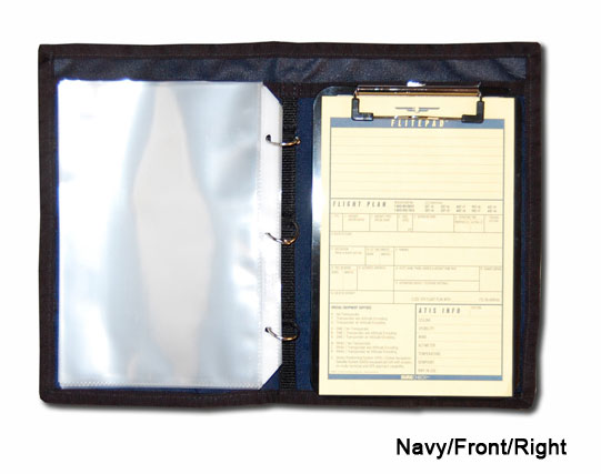 Aeroboard FL200 has many outstanding features which makes it one of the most useful organizational tools a pilot can have. The FL200 has a bifold design with 3-ring center binder, 10 clear page protectors(great for organizing checklists, emergency procedures, reminders, etc.), and 2 handy large storage pockets (for charts & other items of similar size). The Aeroboard FL200 has what you've been looking for. 15" x 11" open, 7.5" x 11" closed. Available in Right or Lefthand and in Black, Navy, or Camo. |
