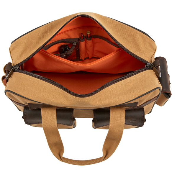Whether you’re soaring above the clouds in your Cirrus or closing a big deal in your desk chair, this Folio Bag looks like it just left the flight deck of a DC-3. But while the Bush Pilot Folio has plenty of style, it’s also a very practical bag, storing a surprising amount of gear without looking bulky or weighing you down. It has separate pockets for your tablet and laptop, plus a large center compartment and plenty of exterior pockets. You can keep everything separated but easy to find. For further utility, the Folio Bag has a rear strap to securely attach it to your roll-aboard.Features