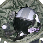 An all new version of what was already the best Helmet Bag available with new FOD prevention features! 420 Denier Cordura Nylon with 1/2" cloth poly-fill to cushion your helmet. Heavy duty nylon zipper - resists snags. Two interior pockets WITH VELCRO CLOSURE that fit your DTC, VTR tapes, sunglasses or water bottle without having them fall into the main compartment when you put it down! Minor, but a great new feature. This super tight knit nylon shell is extremely water resistant and provides superior protection for YOUR expensive equipment - and the interior lining is extremely soft. It will not scratch your visor. Oversized from standard issue versions, it is superior for helmets with with NVG or HMS mounts! Two NEW pockets for smaller items. Developed and fielded by Fly Boys, ONLY Fly Boys offers these two new zippered pockets - which are located above the tall exterior pockets. The actual pocket is situated between the main compartment and the exterior pockets, and are rectangular in shape. They are absolutely perfect for those small items that you don't want ending up on the cockpit floor, or want fast access to them without having to fish around for them in the bag. Things like wallets, sunglass cases, loose coins, flashlight, earplugs, are PERFECT here! A "small" feature that spells huge returns in organization, protection for gear and not F.O.D.'ing out that 5 million dollar GE110 on your F-16! Bottom line is this is significant upgrade from the standard issue helmet bag and you won't be disappointed. Comes with an exact color matched, adjustable shoulder strap fitted with a gripping contouring rubber shoulder pad for hands off carrying if necessary - It won't slip off of your shoulder. |