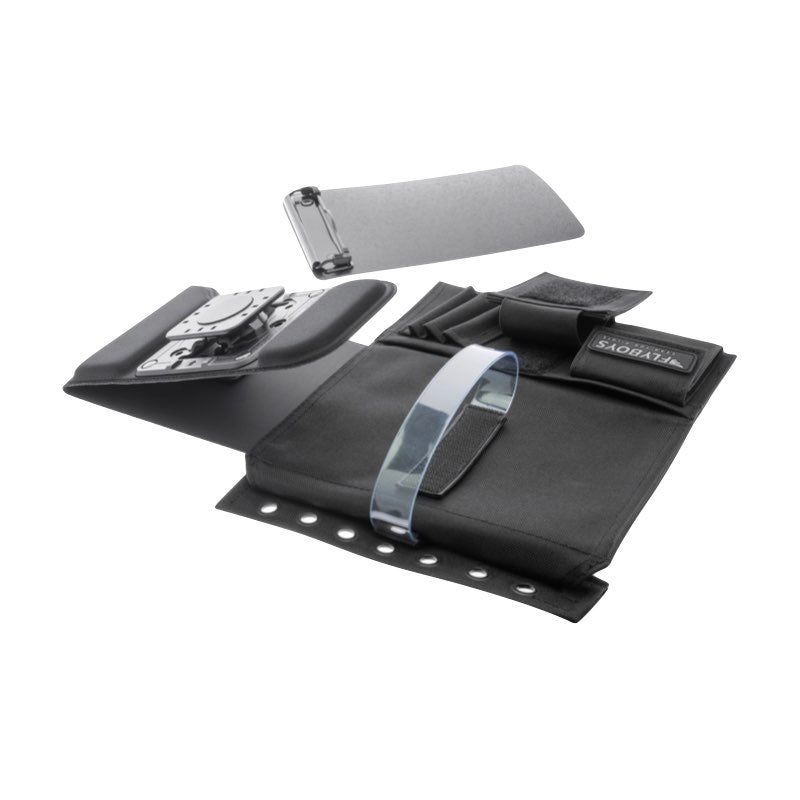 Transform a FB3316 FlyBoys Reversible Kneeboard or FB1316 FlyBoys Classic Kneeboard into an Electronic Flight Bag Leg Mount with the PIVOT Low Profile Kneeboard Adapter and PIVOT case. The molded base and rotating mounting plate offer the slimmest, most secure design for mounting a device on the pilot's thigh.