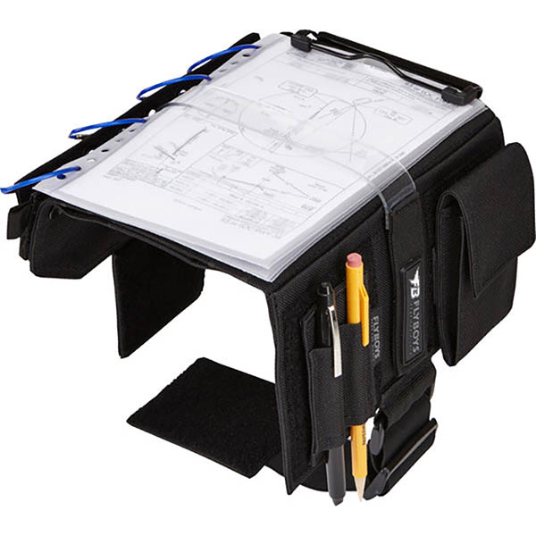 | The unique reversible design accommodates all pilots, left and right-handed, and can be configured to suit the pilot's preferences and mission requirements. All pouches and pen pockets are removable and secured in place with hook and loop fasteners. The durable 600D fabric ensures years of trouble-free use in the most demanding operational environments. Like the FlyBoys Classic Kneeboard, the FlyBoys Reversible Kneeboard features seven eyelets for securing checklists, plastic checklist pages, in-flight guides, and more. The 5 x 8" clipboard can secure standard approach plates. The clipboard can also be removed to accommodate PIVOT Low Profile Kneeboard Adapter (sold separately) for mounting any devices protected by a PIVOT case. The FlyBoys Reversible Kneeboard is the kneeboard of choice for military and civilian pilots everywhere. |