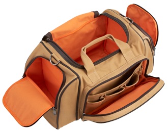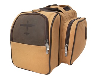 | The Bush Pilot bag is canvas with leather accents, and carries an embossed leather flight outfitters patch on the front. The inside of the Flight Level has the signature Flight Outfitters orange, making it easy to find gear in a dark cockpit. There are two large padded side pockets for headsets. The large front zip pocket has 4 organization pockets, for chargers and other smaller items that tend to find their way to the bottom of other bags. The Bush Pilot Bag also features a pass through strap on the back to slide over rolling luggage handles and a leather shoulder strap pad. |