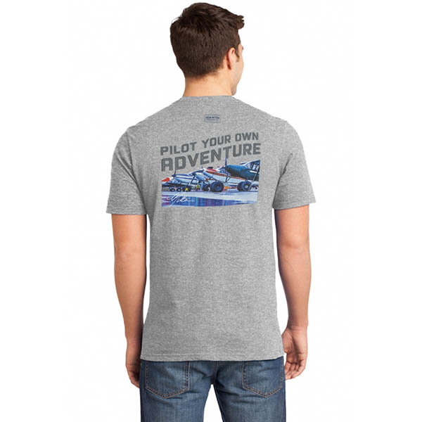The bigger the wheels, the bigger the adventure. No matter what surface you’re landing on, the Adventure Wheels T-shirt will showcase your love of backcountry flying. Features a Deon Mitton photograph of STOL planes in Valdez, AK and the Flight Outfitters tagline – Pilot Your Own Adventure. “Super Soft” 50/50 blend.