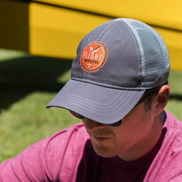 The Flight Outfitter's Trucker Hat looks good and feels great. Lightweight 60/40 cotton/poly keeps you comfortable, whether you’re at the ballpark or in the air. The front features the classic Flight Outfitters logo. The top button is removed so this hat won’t interfere with aviation headsets. Adjustable snap back for an adjustable fit. One size fits most. |
