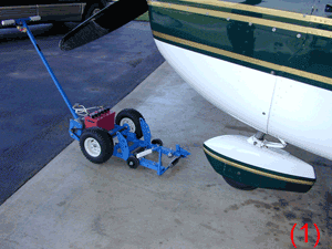 | The Nose-Dragger Dragger™ 6HP Gas Powered Tow Bar features a swing gate front roller (for easy loading), 10 ball bearing rollers (which push and guide the nose wheel), and does not require the use of adapters, winches, or hydraulics. Effortless ground handling is accomplished by its lightweight design and slow walking speed. The Nose-Dragger Dragger  accepts nose wheels up to 600 x 6 (with or without wheel fairings), and no metal-to-metal or metal-to-fiberglass contact. Available in gas or electric power models.  • Patented Design • 5 Second Loading & Unloading • Fits Almost Any Aircraft • With OR Without Wheel Fairings • Maneuver In Any Direction • Operator Has Good View Of Wingtips Nose-Dragger Dragger™ Loading Sequence |