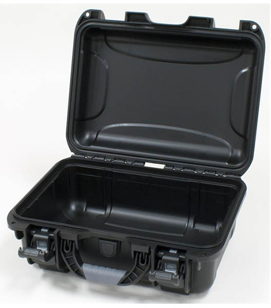 | Black Waterproof Injection molded case, with interior dimesions of 13.2 x 9.2 x 3.8 inches. NO FOAM