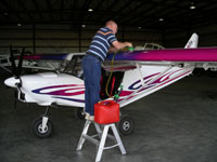 | GoatThroat Pumps have been in the industrial market for 15 years. Recently introduced to aviators, these pumps deliver fuel efficiently and directly to the filler downspout with a finger controlled discharge nozzle. Made of chemical grade polypropylene, GoatThroat Pumps can pressurize any container in seconds. Internal pressure relief valve opens at 7 psi, but 2 psi is all you need to deliver fuel safely to your plane. A drip-proof faucet dispenses small amount or gives steady flow. Containers remain upright, so there is no extra handing and little chance for accidental spills. |