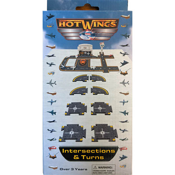 | Each package includes 4 turns and 4 intersection pieces. Runways, taxiways and hangar accessories, make Hot Wings the most exciting collectible planes available. With seven distinct series, dating from the earliest Bi Planes to the newest Space Planes, Hot Wings offers something for every aviation enthusiast. Age: Over 3 years due to small parts. |