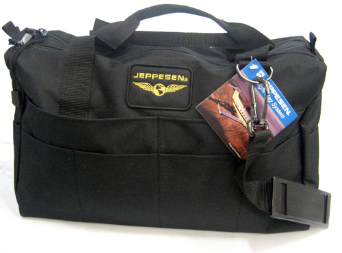 | A great multi-purpose bag for the student pilot or mechanic. Features include: seven exterior pockets, three small exterior pockets for pens or small flashlights, an interior key clip, removable shoulder strap, double zipper opening, and reinforced base. Each non-padded bag is made from polymer with a PVC coating on one side for added water resistance, strength, abrasion resistance, and durability. Size: 11"H x 5.5"W x 16"L (Black only) |