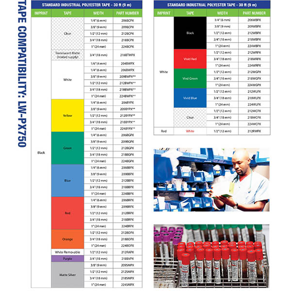 COMPATIBLE TAPES - The LW-PX750 handheld label maker is built for demanding industrial environments, printing on heat shrink tube, self-laminating wrap, durable vinyl, standard industrial, and specialty tapes. Epson LABELWORKS offers a wide selection of tape colors and sizes to meet diverse labeling needs in industrial settings.