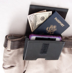 Secret Pocket Phone Case Genuine Leather This travelers accessory is made of lightweight / flexible genuine leather. The phone case holder capacity for a phone up to but not greater than 3-1/4" in width x 5" in length. The extended secret pocket 6" in depth fits smoothly along side your hip underneath clothing to easily hide: