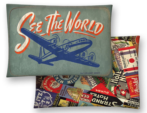Indoor-Outdoor Vinyl Pillows. Vintage Scrapbook Designs made from Soft "Naugahyde". Excellent for your screened-in porch, deck, boat, patio, or lanai. 100% Made in the USA |