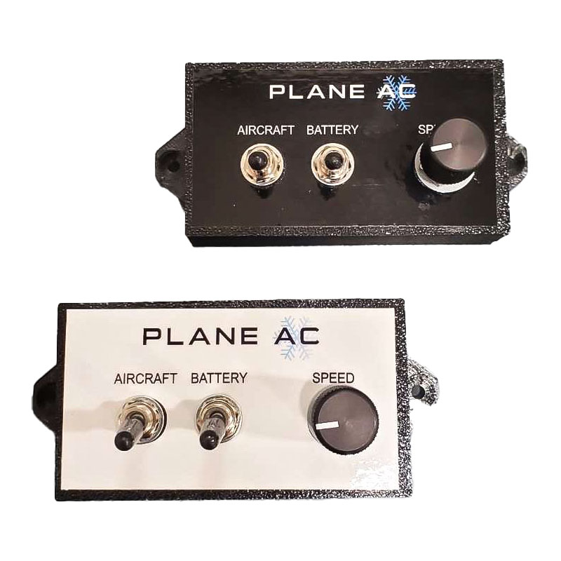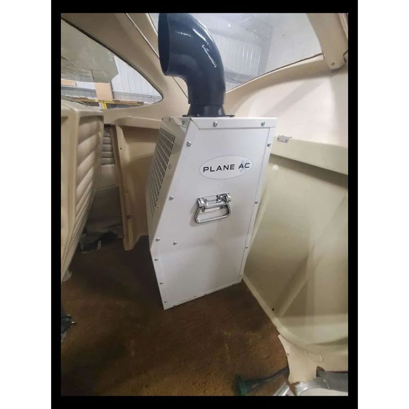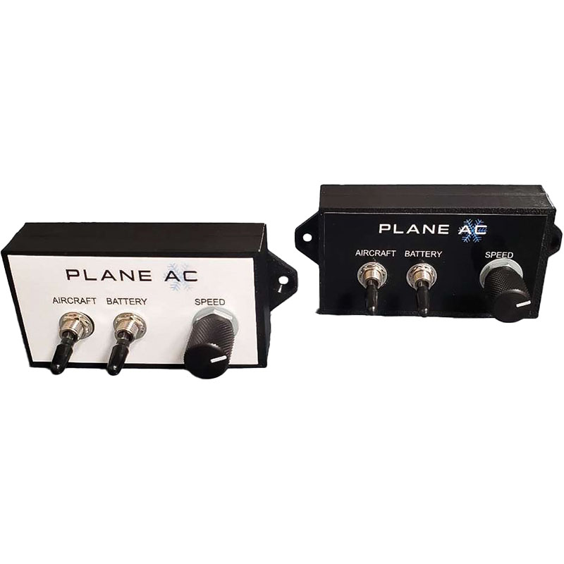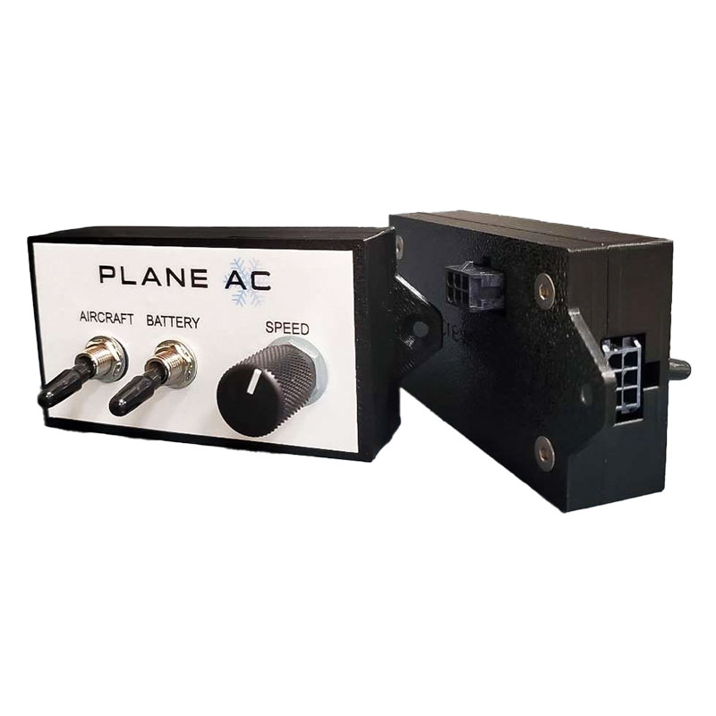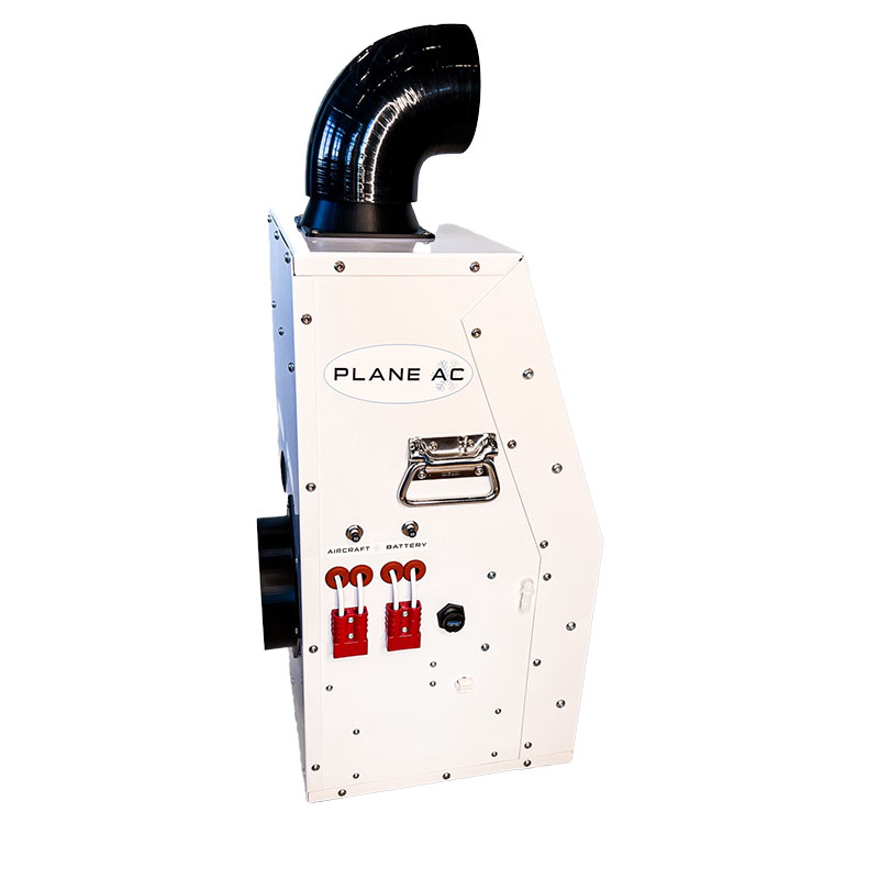 Hot cabin temperatures aren’t only uncomfortable, they’re unsafe. Say goodbye to hot flights forever. Introducing PlaneAC! PlaneAC is a portable high-capacity DC powered electrical air conditioning unit available in both 12v and 24v units. Ready to cool out of the box, PlaneAC operates on refrigerant and is completely ice-less. Using advanced microchannel heat exchangers and the latest in high efficiency compressors and components, PlaneAC provides maximum cooling capable of cooling your entire aircraft cabin. Now you and your passengers can enjoy the comfort of modern air-conditioning in your aircraft. Air-conditioning adds utility and safety to your aircraft by keeping your cabin temperature cool and comfortable from pre-flight to landing. With a compressor rating of over 11,500btu (24v – 12,000btu) PlaneAC can achieve well over 8,000btu of real-world cooling capacity! With proper venting PlaneAC can exceed that number. Offering near built-in AC performance at a fraction of the cost.The unique self-contained design of PlaneAC allows for quick and easy installation saving you time and money! As a portable device, no STC’s are required to install PlaneAC. Onboard CBs and ‘plug and play’ remote harness make installation simple. Place the unit, connect power and ground with the included SB50 plugs and plug in the remote control, vent the waste heat, and run the drain. That’s it! Less down time, more flight time! Initial install generally takes an hour or two. After that, PlaneAC can be removed and reinstalled in minutes! While the primary source of power is the aircrafts electrical system (Alternator), PlaneAC can also be powered by an independent portable battery source. This allows you to pre-cool your aircraft without energizing the aircraft’s electrical system! Turn on PlaneAC to start cooling your cabin during pre-flight and have it comfortable for taxi and take-off! The genius of our design allows PlaneAC to be powered by either the alternator or portable battery, or both! At highest output 12v PlaneAC units draw 50amps (24v – 46amps) continuous. PlaneAC does NOT require the installation of a 100amp alternator. If a small alternator is used, owners can connect a portable battery (50ah or more). By utilizing both power options users can manage electrical load by moving or sharing load by selecting the desired input. This gives the user flexibility to install PlaneAC without having to invest in costly alternator upgrades. Our panel mount remote control brings input selection and output speed control conveniently within the pilot’s reach. The compact portable size of PlaneAC makes installation and removal simple. At just 50lbs the unit can be moved with ease. Specifically designed to fit through almost any baggage door. Unlike built-in systems where any changes to weight and balance and CG are permanent, PlaneAC offers flexibility by being able to be removed when not in use. PlaneAC is a high-capacity complete cabin cooling unit with simple installation at an affordable price. With multiple power options in a portable design, PlaneAC offers total flexibility for your air-conditioning needs. Add utility to your aircraft by increasing comfort and safety with air-conditioning. Bring your aircraft into the modern age and add air-conditioning conveniently and affordably to your aircraft today with PlaneAC! |
