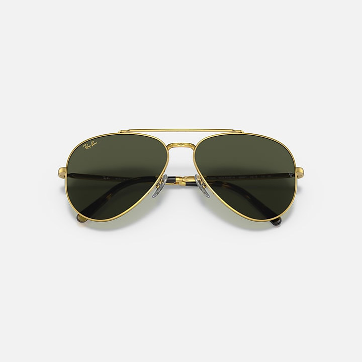 Ray-Ban New Aviator Sunglasses Gold / Green 62mm.