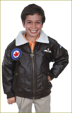 For the child who wants to be a pilot, this authentically detailed Up and Away Royal Canadian Air Force (RCAF) Bomber Jacket looks like the real thing worn by W.W.II aviators.