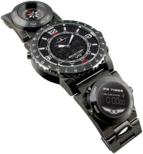 Scheyden True Aviator Steam Gauge Black Ss Watch
