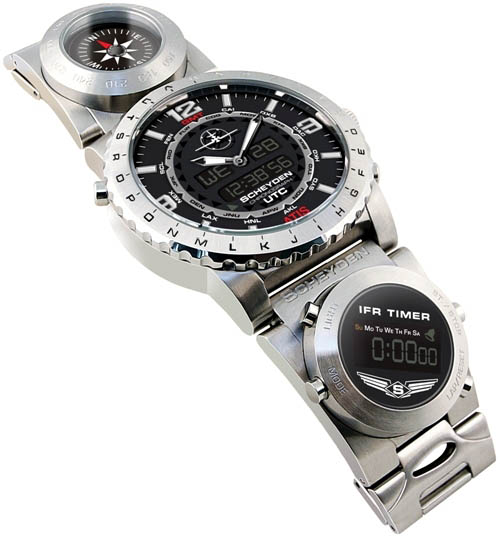Swiss ISA Movement Watch with matte black dial Removable Digital IFR Timer, includes two SS band links when one or both instruments are removed Capability Features