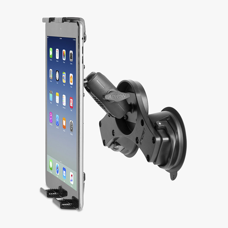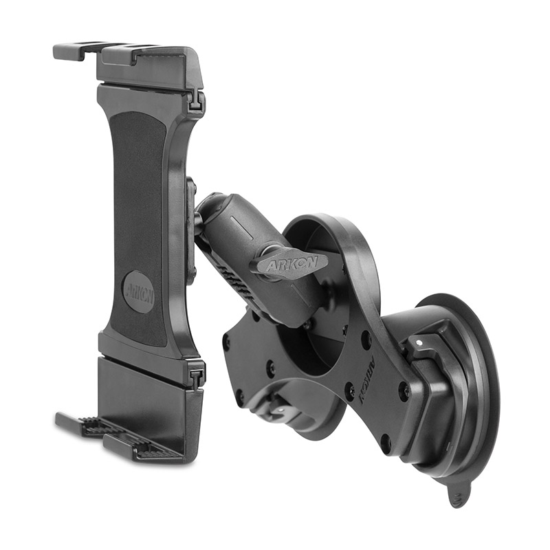 Connecting the aircraft tablet holder and double suction mount two is a solid 3.75" Robust™ Shaft, giving you full adjustability of your tablet within your cockpit to position your tablet. Secure Aircraft Tablet Holder Constructed from a hardwearing and tough reinforced composite, the Slim-Grip® Ultra Pro Universal Tablet Holder securely accommodates tablets ranging from 7" to 18.4", including the iPad and Galaxy Tab. Its user-friendly design features a spring-loaded mechanism, ensuring your tablet stays firmly in place during flight. The spring-loaded design allows for effortless one-handed insertion and removal of your tablet. Push down on the holder's lower leg and release, making it ideal for busy pilots and weekend flyers. Multiple Support Legs The airplane tablet holder includes four adjustable support legs—two short and two long—providing customization for various tablet brands and models. These different legs allow you to choose the optimal leg combination that meets your tablet's size while maintaining full access to its buttons and ports. Use the two short legs for tablets between 6.56" and 8.94" in height. One long and one short leg are recommended for tablets between 7.03" and 9.875" in height. These leg combinations ensure a secure grip on your chosen tablet. Adjustable Robust™ Shaft Equipped with one of Arkon's solid 3.75" mount shafts, this aviation suction mount can be adjusted to any angle and swiveled at both ends, providing 360° rotation for optimal tablet placement. This design ensures your tablet remains within your eyeline without distracting you from operating the aircraft. Strong Double Suction Mount This airplane dual suction mount ensures a secure hold on your cockpit's windshield with its pair of sticky suction bases, each featuring a one-touch lever for maximum grip power. Engineered to endure both hot and cold climates, it consistently delivers impressive stability with an 80 lbs pull force, even in bad weather or turbulence. |