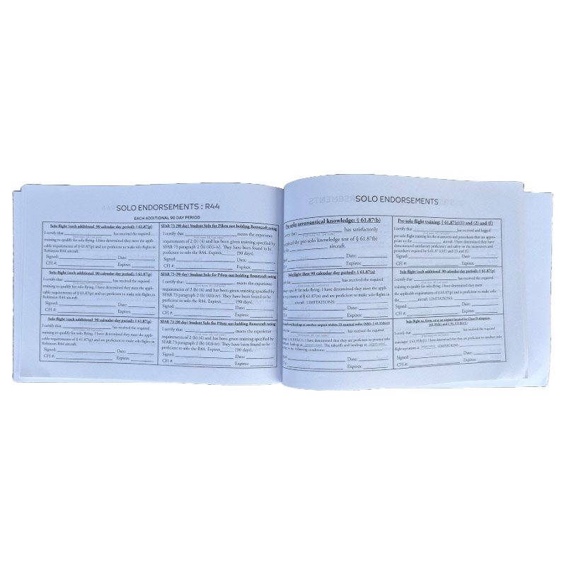 DESIGNED JUST FOR HELICOPTER PILOTS. Follows the regulations from logging time- with rotorcraft helicopter specific columns, and NO airplane columns to line through. Complete with the proper endorsements in the proper order - with options for R22, R44, and blank fillable endorsements for Cabri, Schweitzer, or any other aircraft you choose to learn in. |
