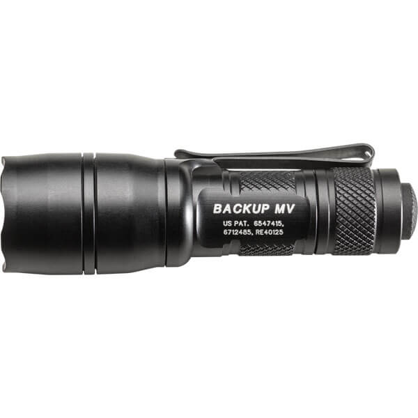 | The sleek, ultra-compact E1B-MV was originally developed as backup lights for law enforcement pros. This outstanding everyday-carry light sets itself apart from the rest of the Backup family with its broad, useful MaxVision Beam™, created by a special faceted reflector that shapes the LED’s light into a smooth, seamless wall of light that’s perfect for closer-range applications and maintaining situational awareness. The E1B-MV uses a single 123A disposable battery to power this field-of-vision-optimized beam at two useful outputs—400 and 5 lumens—and is programmed to lead with high output as a tactical/self-defense light should. Everything else about the E1B-MV is pure Backup, including its hard-anodized aluminum body, smooth styling, tailcap pushbutton switching, lockout tailcap, and two-way pocket clip that allows for bezel-up or -down carry. |