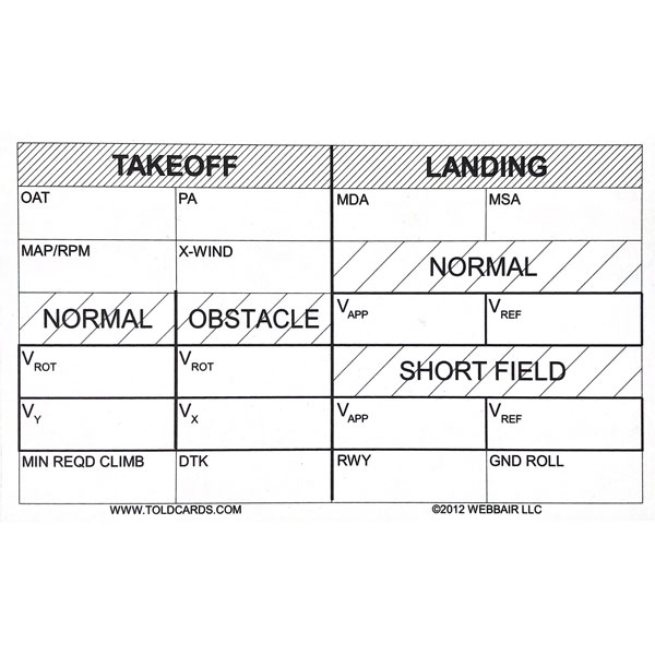 | Single-Engine VFR 3x5 double-sided – Pack of 25 cards for VFR Single-engine flying. It has all the data needed to complete a flight under VFR conditions. This card is printed on both sides. |