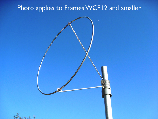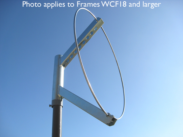 | Small Frames (12" and smaller) - Light-weight frames made of galvanized steel wire. Large Frames (18" and larger) - These are heavy duty frames designed to withstand storm force winds and harsh environmental conditions. Large frames are made of galvanized steel (WCF18) or a combination of steel and cast aluminum (WCF20, WCF22, WCF24). Fits over any pole that has an outer dia of less than 1" and is powder coated steel. Made in U.S.A. |