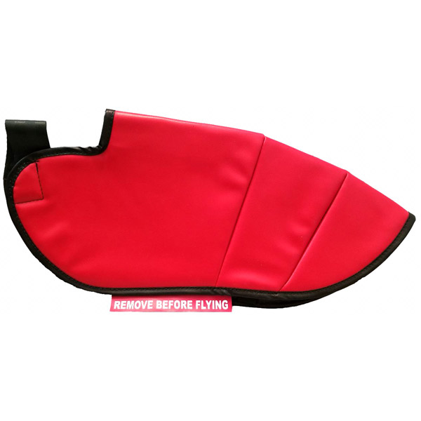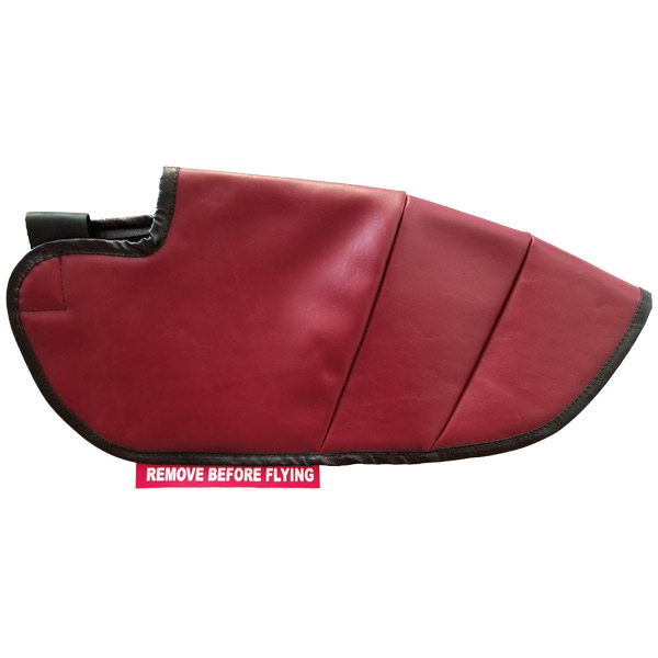 Stop tow-bar wheel pant scuffing. Avoid costly wheel pant repainting. Fits models: Cessna 172 | 182 | 206 | Piper PA-28 Cherokee Made of cloth with a vinyl cover. Velcro strap on one end and attached elastic strap on the other. |