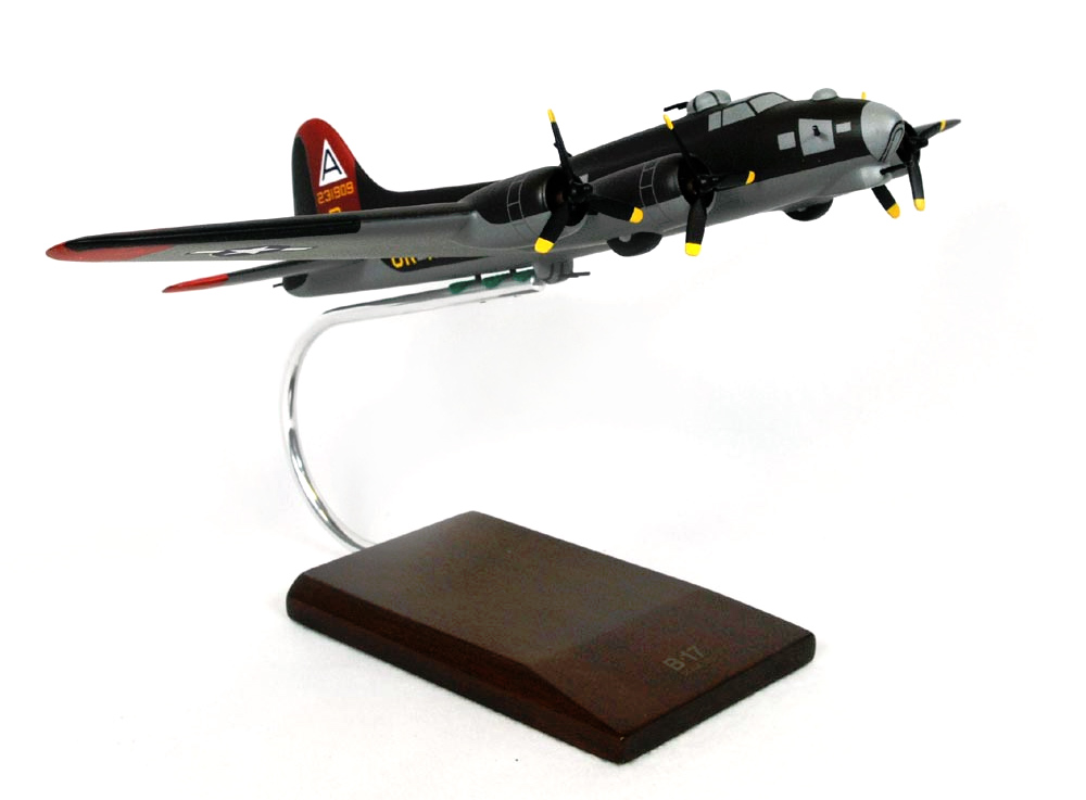 This high quality replica is handcrafted from mahogany and comes with a wooden base. Length is 12-1/2 and wingspan is 17-1/4". Scale 1/72. The Boeing B-17 Flying Fortress is an American four-engine heavy bomber aircraft developed for the U.S. Army Air Corps (USAAC). The B-17 Flying Fortress went on to enter full-scale production and was considered the first truly mass-produced large aircraft, eventually evolving through numerous design advancements, from B-17A to G. The B-17 was primarily employed in the daylight precision strategic bombing campaign of World War II against German industrial and civilian targets. The B-17 also participated, to a lesser extent, in the War in the Pacific.From its pre-war inception, the USAAC touted the B-17 Flying Fortress aircraft as a strategic weapon; it was a potent, high-flying, long-ranging bomber capable of unleashing great destruction yet able to defend itself. The B-17 established itself as a superb weapons system, dropping more bombs than any other U.S. aircraft in World War II. Of the 1.5 million tons of bombs dropped on Germany, 500,000 were dropped from B-17s. Generally considered the defining B-17 design, all changes made in the B-17F production run were incorporated into the final version, the B-17G Fortress. 8,680 B-17G Fortress were built. Eighty-five B-17G Fortress were transferred to the Royal Air Force, where they were used as the Fortress III. They operated with two squadrons of Bomber Commands No. 100 Group RAF at RAF Sculthorpe, where they were used for electronic countermeasures missions to confuse and jam enemy radar. They were also used as decoys during night bombing attacks. They took part in various such operations until they were disbanded in 1945 July. |