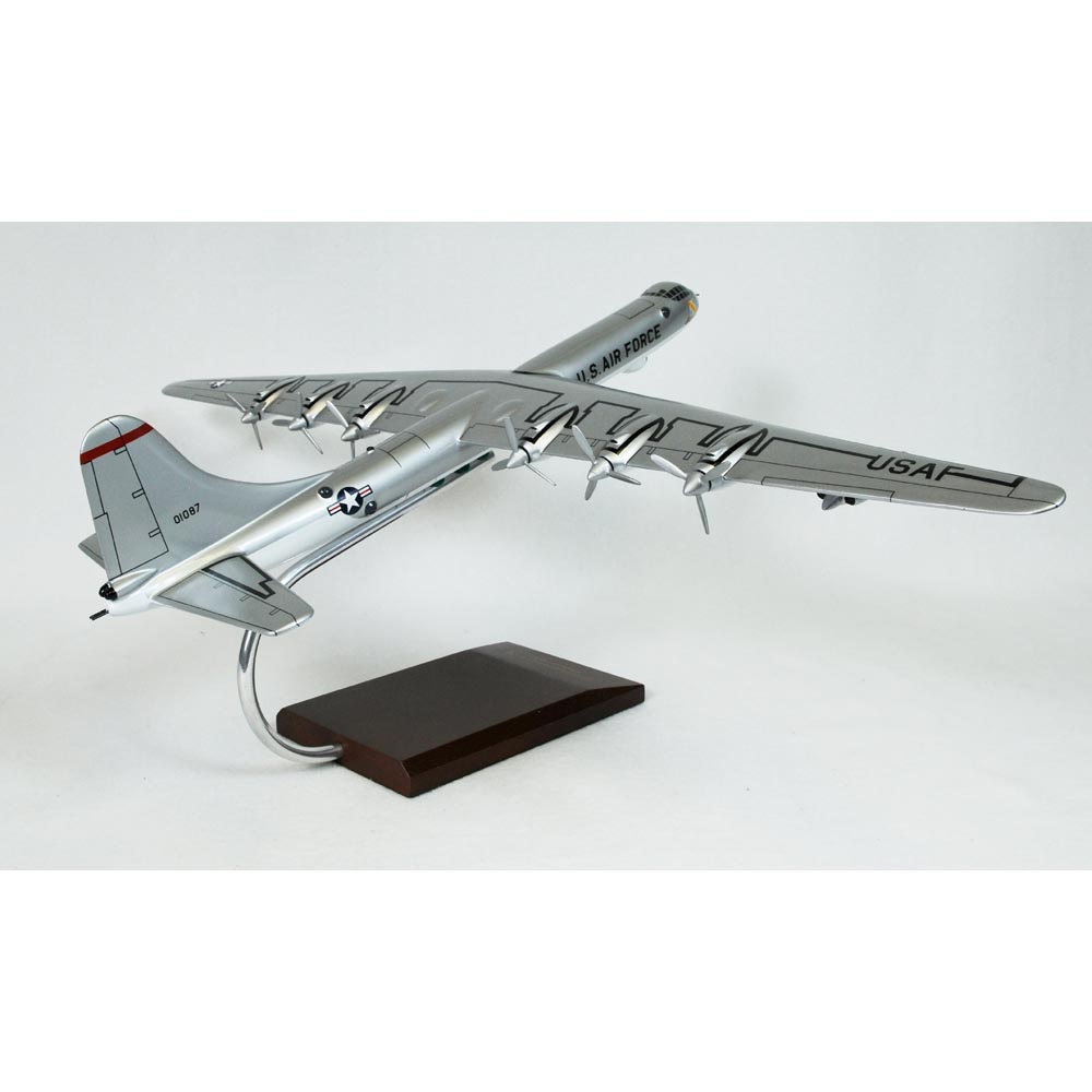 The Convair B-36 Peacemaker was the first thermonuclear weapon delivery vehicle and the first operational strategic bomber to truly have intercontinental range. It was the largest piston-engined aircraft ever to be mass-produced. It was also the largest combat aircraft ever built, although there have been larger military transports. The B-36 set the benchmark for subsequent US long range bombers such as the B-52 Stratofortress and B-1 Lancer. The development of the B36 was brought about by Nazi Germanys aggression and subsequently by the Japanese attack on Pearl Harbor. The United States Army Air Corps required a long range bomber and opened up a design competition on April 11, 1941. Despite the sense of urgency, the B-36 program progressed slowly. Existing technology failed to satisfy the military requirements, early wartime demands exceeded materials, and weapons more readily available received the highest priority during the war. The Peacemaker had four bomb bays that could carry up to 86,000 pounds of bombs, six remote-controlled retractable gun turrets, and fixed tail and nose turrets. It was the only aircraft designed to carry the T12 Cloud Maker, a gravity bomb capable of producing an earth quake bomb effect. The B-36s maiden flight was on August 8, 1946, and all variants served under the US Air Force Strategic Air Command from 1948 to 1958. On Labor Day, September 1, 1952, two-thirds of the 7th and 11th Bomb Wings B-36s were incapacitated, not by enemy action, but by a windstorm. At 6:42 PM, a tornado made a direct hit on the Carswell Air Force Base, scattering the enormous bombers like empty milk cartons. Flight operations were transferred to nearby Meacham Field and other military bases. Most of the planes were repaired and flying again in less than five weeks. The final version of the Peacemaker, the B-36J, had two additional tanks which allowed an additional fuel load of 2,770 gallons. It also had a much stronger landing gear, permitting a gross takeoff weight of 410,000 pounds. A total of 33 B-36Js were accepted by the Air Force, starting in 1953. Phaseout was completed in 1959. |