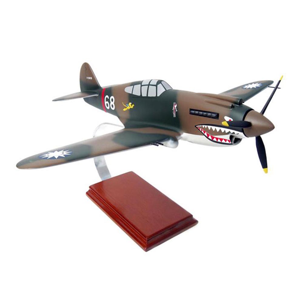 This collectable model P-40 Warhawk represents one of the most famous outfits in military history, the American Volunteer Group, better known as the Flying Tigers. With their iconic paint schemes a familiar icon of the war, the Flying Tigers fought for less than a year, but became legendary. Painted as the P-40 Warhawk flown by Flying Tiger Tex Hill in World War II, this 1/24-scale model P-40 Warhawk makes a great pilot gift or a present for any veteran, aviation enthusiast or history buff. Design work on the P-40 began in 1937, but numerous experimental versions were tested and refined before service deliveries began in September 1940. P-40s first saw wartime service with the British Commonwealth squadrons of the Desert Air Force in August 1941. Unable to outperform the top Japanese and German fighters of the day, the Warhawk’s tough build and good diving performance made it an effective warfighter. In 1941, the American Volunteer Group – the Flying Tigers – began combat operations in China against Japanese forces. In little more than six months, the Tigers shot down 229 Japanese aircraft and destroyed scores more on the ground. David lee “Tex” Hill joined the AVG in 1941, and had achieved 12 ½ victories by the time the AVG disbanded in 1942. One of only a handful of Flying Tigers to join its successor, the 23rd Fighter Group, Hill later became the group commander. By war’s end, Hill had shot down six more aircraft. Hill died in 2007, but the Commemorative Air Force honors his service and memory by flying a P-40 Warhawk painted as his AVG aircraft. |