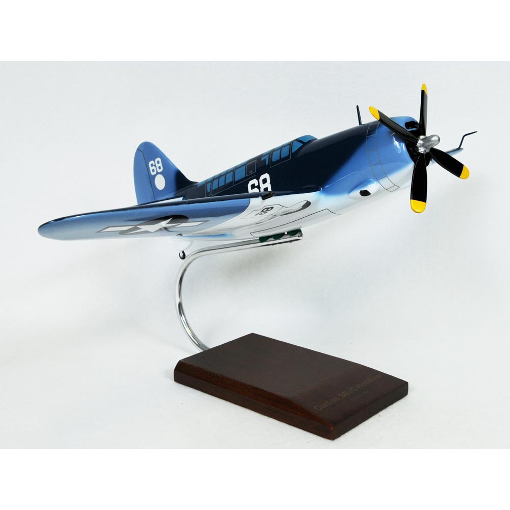 The Curtiss SB2C Helldiver was a single-engine, carrier-based dive bomber produced for the United States Navy (USN). It was the Navys principal dive bomber during the latter part of World War II. Despite a reputation for being difficult to handle at low speeds, it was responsible for the destruction of more Japanese targets than any other aircraft. The Helldivers good speed and range made it an essential tool in the far reaches of the Pacific Theater. Developed to replace the Douglas SBD Dauntless in USN service, the SB2C was able to carry a considerable array of armament and featured an internal bomb bay that reduced drag when carrying heavy ordnance. Due to demanding requirements set forth by both the Marines and the Army Air Forces, Curtiss incorporated features of a multi-role aircraft into the design. After the crashing of two prototypes, numerous modifications were specified for the production model. The size of the fin and rudder was enlarged, and fuel capacity and fixed armament were also increased. A total of 7,140 aircraft were produced during World War II. After suffering many delays due to the modifications, the Helldiver finally entered combat on November 11, 1943 on USS Bunker Hill, attacking the Japanese-held port of Rabaul in Papua New Guinea. By mid-1944, it had completely replaced the SBD. Although the SB2C had already entered naval service, it still had structural problems that forbid the aircraft crews from performing one of its main tasks, that is dive bombing in clean conditions. Following the Marianas operation in June and July of 1944, SB2C squadrons participated in the advance through the western Pacific to Okinawa and the Japanese home islands. After the Second World War, the Helldiver continued to serve in USN carrier bombing/attack squadrons until early 1949. Foreign use of the aircraft included employment by the Greek Air Force in the countrys civil war of 1949, and carrier operations over Indochina by the French Navy from 1951 to 1954. It also saw service with the Royal Thai Air Force, and with France, Italy and Portugal for anti-submarine warfare. |