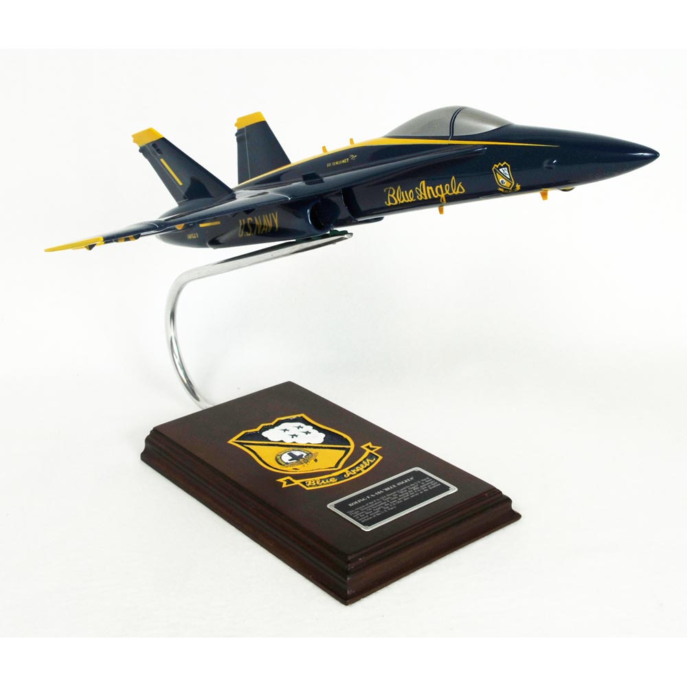 The McDonnell Douglas F/A-18 Hornet was a result of the United States Navys (USN) Naval Fighter Attack Experimental program to procure a multirole aircraft to replace the F-4 Phantom II, A-4 Skyhawk and A-7 Corsair II, and to complement the F-14 Tomcat. Secretary of the Navy W. Graham Claytor, Jr. gave the name “Hornet” on March 1, 1977. The F/A-18 is a twin-engine, multi-mission fighter/attack aircraft that can operate from either aircraft carriers or land bases. It was designed to attack both ground and aerial targets. Developed in the 1970s for service with the Navy and the US Marine Corps, it is also used by the air forces of several other nations. The Hornet fills a vast spectrum of roles, including fleet air defense, interdiction, air superiority, suppression of enemy air defenses, close and deep air support, reconnaissance, forward air control, fighter escort, and day and night strike missions. In addition, it is the aerial demonstration aircraft of the USNs Navy Flight Demonstration Squadron, the Blue Angels. Formed in 1946, the Blue Angels are the worlds first officially sanctioned military aerial demonstration team. The group has been using the Hornet since they completed their 40th anniversary year and unveiled the sleek aircraft on November 8, 1986. The power and aerodynamics of the Hornet allows them to perform a slow high angle of attack “tail sitting” maneuver, and to fly a loop with landing gear down in formation, neither of which has been duplicated by the Thunderbirds of the Air Force. The Blue Angels perform more than 70 shows at 34 locations throughout the United States each year, where they still employ many of the same practices and techniques in their aerial displays as in 1946. Since their inception, they have flown for more than 427 million spectators worldwide. |