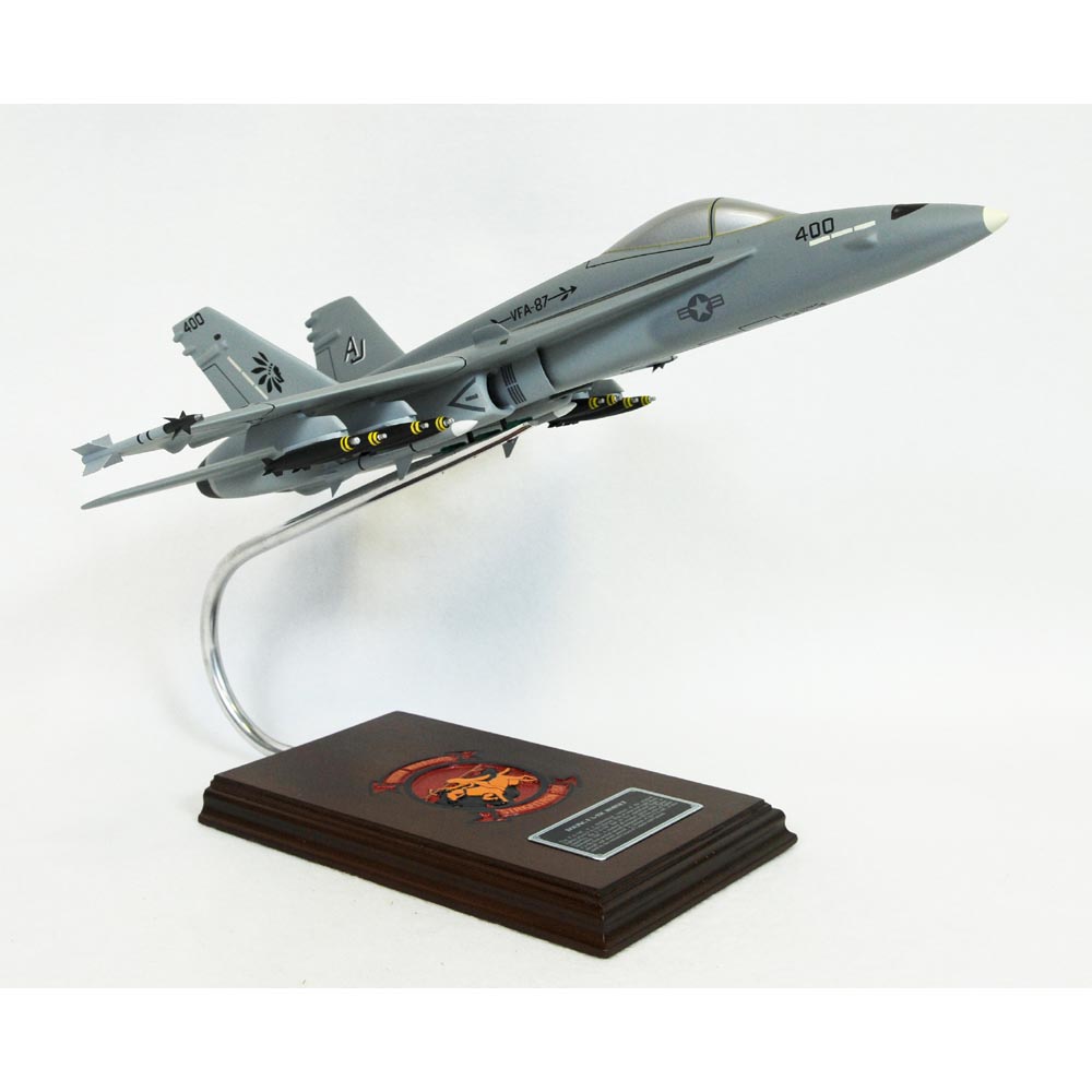 The McDonnell Douglas F/A-18 Hornet is a twin engine, multi-mission fighter/attack aircraft that can operate from either aircraft carriers or land bases. It was designed to attack both ground and aerial targets. Developed in the 1970s for service with the United States Navy (USN) and the US Marine Corps (USMC), it is also used by the air forces of several other nations. The Hornet fills a vast spectrum of roles, including fleet air defense, interdiction, air superiority, suppression of enemy air defenses (SEAD), close and deep air support, reconnaissance, forward air control, fighter escort, and day and night strike missions. In addition, it has been the aerial demonstration aircraft of the USNs Navy Flight Demonstration Squadron, the Blue Angels, since 1986. The F/A-18 was a result of the USNs Naval Fighter Attack Experimental (VFAX) program to procure a multirole aircraft to replace the F-4 Phantom II, A-4 Skyhawk and A-7 Corsair II, and to complement the F-14 Tomcat. Secretary of the Navy W. Graham Claytor, Jr. gave the name “Hornet” on March 1, 1977. The F/A-18 was among the first planes to heavily utilize multi-function displays, which at the switch of a button allow the pilot to perform either fighter or attack roles, or even both. The Hornet is also notable for having been designed with maintenance in mind, hence requiring far less downtime than its counterparts. |