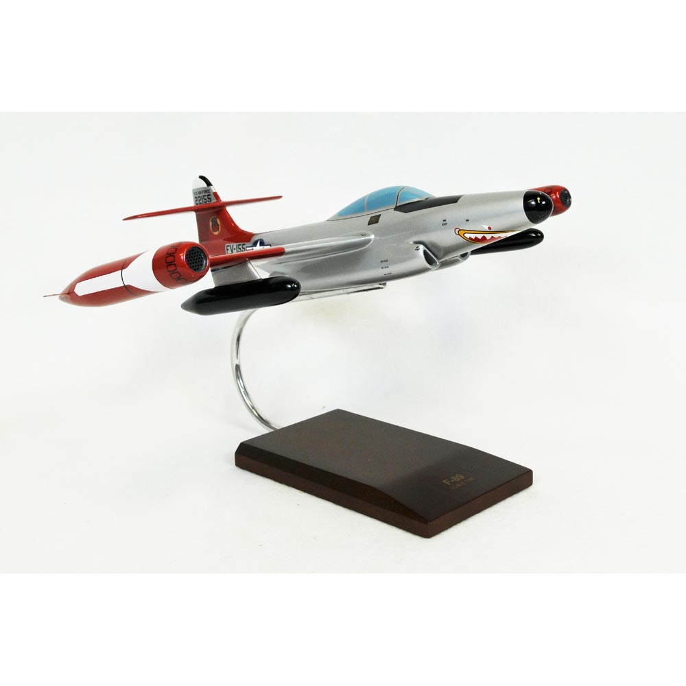 The Northrop F-89 Scorpion is a twin-engine, all-weather fighter-interceptor designed to locate, intercept, and destroy enemy aircraft by day or night under all types of weather conditions. One of the most heavily armed fighter aircraft, it was the backbone of the United States Air Forces (USAF) Air Defense Command (ADC) for over 17 years, helping patrol the skies during the period when Soviet intercontinental bombers first became a threat. The F-89 was the first aircraft armed with nuclear weapons (the MB-1 Genie rocket) for air-to-air use. The Scorpion was a result of a 1945 US Army Air Forces specification for a jet-powered night fighter to replace the P-61 Black Widow. It was the first multi-seat, all-weather jet interceptor and the first aircraft designed to carry an all-rocket armament. Its advanced radar system was capable of tracking and engaging hostile bombers in any weather. A unique feature added to the prototype during development was the deceleron, a two-part aileron that could split open to act as an air brake. This feature became Northrops trademark and is still being used today, as can be seen on the B-2 Spirit. The F-89s name came from its resemblance to a scorpion ready to strike. The name stuck and was later officially recognized by the Air Force. The aircraft made its maiden flight on August 16, 1948. The first production F-89A was accepted by the USAF on September 28, 1950. Only eight aircraft were completed before the type was upgraded to the F-89B, with new avionics. Unfortunately, these had considerable problems with engines and other systems, and soon gave way to the F-89C. The first major production model was the F-89D, which first flew on October 23, 1951 and entered service in 1954. On July 19, 1957, a Genie test rocket was fired from an F-89J, the first time in history that an air-to-air rocket with a nuclear warhead was launched and detonated. There were no new-build F-89Js, but 350 F-89Ds were modified to this standard. These served with the ADC through 1959 and with the Air National Guard through 1969. |