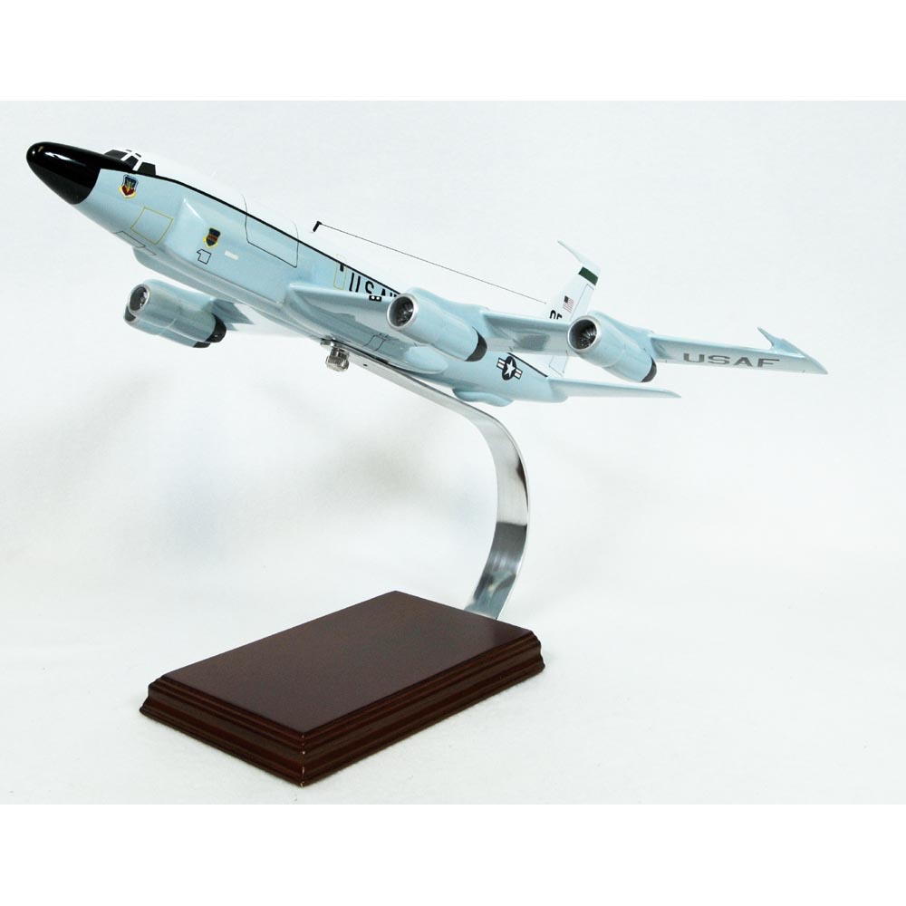 The USAF RC-135V/W RIVET JOINT surveillance aircraft are equipped with an extensive array of sophisticated intelligence gathering equipment enabling military specialists to monitor the electronic activity of adversaries. Also known as ""RJ"", the aircraft are sometimes called ""hogs"" due to the extended ""hog nose"" and ""hog cheeks"". RIVET JOINT has been widely used in the 1990s -- during Desert Storm, the occupation of Haiti, and most recently over Bosnia. Using automated and manual equipment, electronic and intelligence specialists can precisely locate, record and analyse much of what is being done in the electromagnetic spectrum. The fleet of 14 RIVET JOINT aircraft increased to 15 in late 1999 with the addition of a converted C-135B. The jets conversion cost about $90 million. The Rivet Joint fleet is currently undergoing significant airframe, navigational and powerplant upgrades which include re-engining from the TF-33 to the CFM-56 engines used on the KC-135R and upgrade of the flight deck instrumentation and navigational systems to the AMP standard. The AMP standard includes conversion from analog readouts to a digital glass cockpit configuration. The Air Force plans to spend at least $1.4 billion to keep the RC-135 Rivet Joint (RJ) fleet flying through 2018. The service also plans to modify a recently retired Air National Guard KC-135 tanker, turning it into the Air Forces 17th RJ signals-intelligence aircraft. |