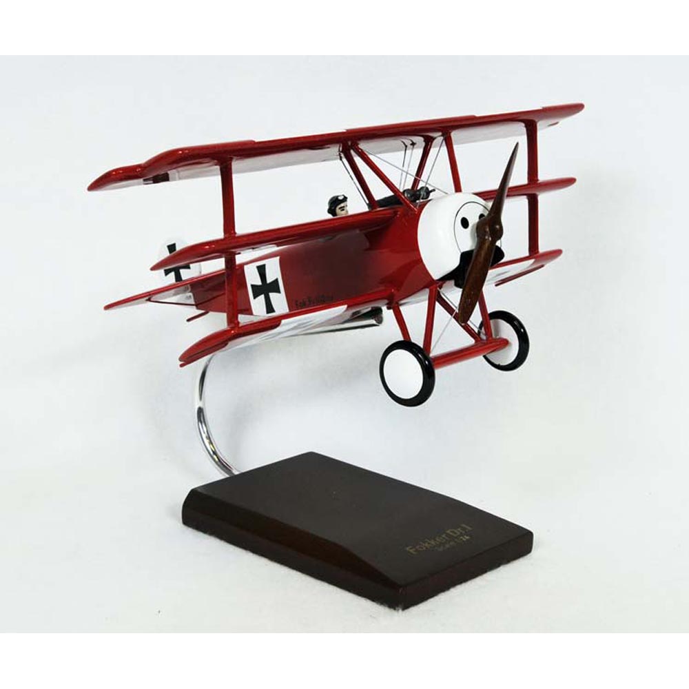 The Fokker Dr.1 is a World War I fighter aircraft manufactured by Fokker-Flugzeugwerke.It was designed by Reinhold Platz and became widespread in 1918. On August 28, 1917, the only machines to receive the F.1 designation were two pre-production triplanes with serial number 102/17 and 103/17 and arrived at Markebee. These two aircraft were identical to the F.1 except for the addition of wingtip skids. The Dr. 1 offered remarkable maneuverability and initial rate of climb. The Dr.1 has a crew of one. It has a maximum speed of 115 mph and a range of 185 mi. After World War I, there were very few triplanes which survived the Armistice. A triplane with a serial number 528/17 was retained as a testbed by the Deutschen Versuchsanstalt fur Luftfahrt (German Aviation Institute). In the late 1930s, a triplane with serial number 528/17 was believed to have crashed. During World War II, a triplane with serial number 152/17 obtained three kills and became the centerpiece of Germany's new aviation museum in Berlin. Currently, there are no known original example of Dr. 1s that survived. |